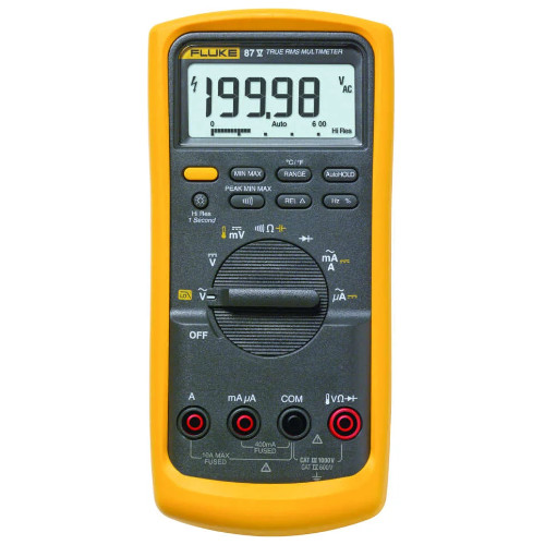 All inputs are protected to CAT-III 1000V and CAT-IV 600V. They can withstand impulses in excess of 8,000V and reduce risks related to surges and spikes. The Fluke-87-5 comes complete with TL75 test leads, AC72 alligator clips, 80BK-A temperature probe and a 9V Battery.