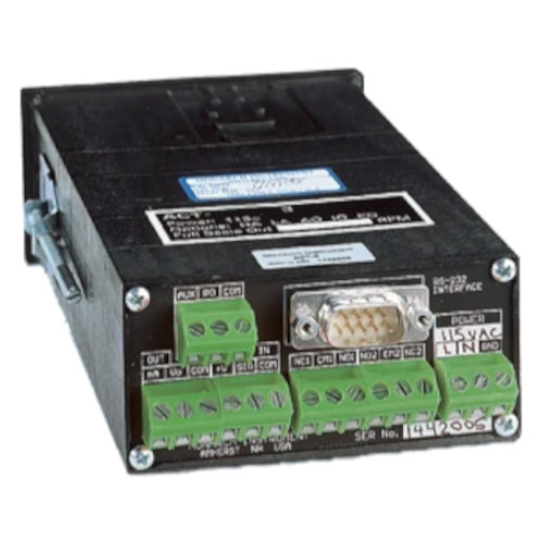 The Monarch Instruments ACT-3X Panel Mount Tachometer is a powerful NIST calibrated fully programmable tachometer and totalizer. It accepts inputs from all Monarch speed sensors or from any standard TTL generating device. The unit operates from 120/240 ACV input power or from 12 or 24 DCV input power (optional). Programming is easily performed through the 5 front panel push buttons or using the free downloadable PM Remote Software. Set up for single channel monitoring. Programmable scale factor with menu selection for multiple pulses per revolution, linear rates, totalization, single event trip speeds (using auxiliary input) and rate of change in RPM. A TTL pulse repeater output is standard.