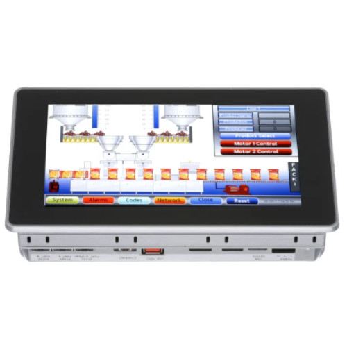 The Red Lion Controls G09 is part of the Graphite Series of rugged operator interfaces. The Graphite Series provides the industry’s first rugged HMI solution to combine flexible plug-in modules with protocol conversion, data logging and web-based monitoring and control. From factories to extreme locations, Graphite allows customers to easily connect, monitor and control their processes. Designed to be extremely rugged, Graphite features cast-aluminum construction, wide temperature ratings and superior shock and vibration specifications. The G09 features Graphite’s sleek design with a 9″ full-color touchscreen display that consumes minimal panel space.