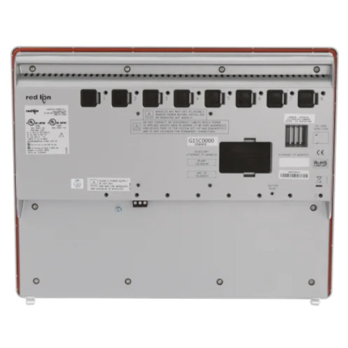The Red Lion Controls G15 is part of the Graphite Series of rugged operator interfaces. The Graphite Series provides the industry’s first rugged HMI solution to combine flexible plug-in modules with protocol conversion, data logging and web-based monitoring and control. From factories to extreme locations, Graphite allows customers to easily connect, monitor and control their processes. Designed to be extremely rugged, Graphite features cast-aluminum construction, wide temperature ratings and superior shock and vibration specifications. The G15 features Graphite’s sleek design with a 15″ full-color touchscreen display that consumes minimal panel space.