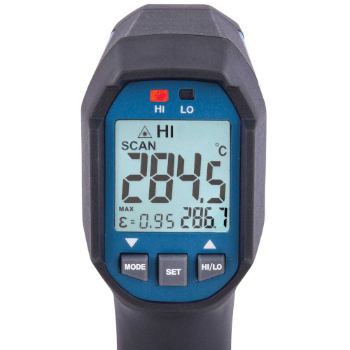 The Reed Instruments R2310 is an infrared thermometer that features a 12:1 distance to spot ratio and is capable of measuring temperatures up to 1202°F (650°C). The R2310 is an affordable non-contact measurement solution able to quickly and efficiently measure the temperature of hot, hazardous or hard-to reach objects from a safe distance. The R2310 has the ability to track maximum, minimum, average and differential readings and the ability to set high/low alarms and monitor continuously.